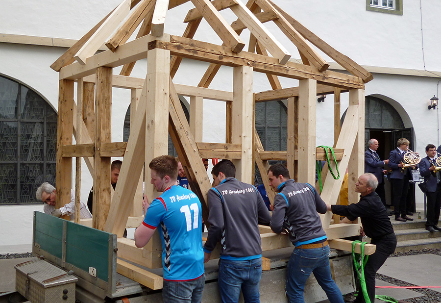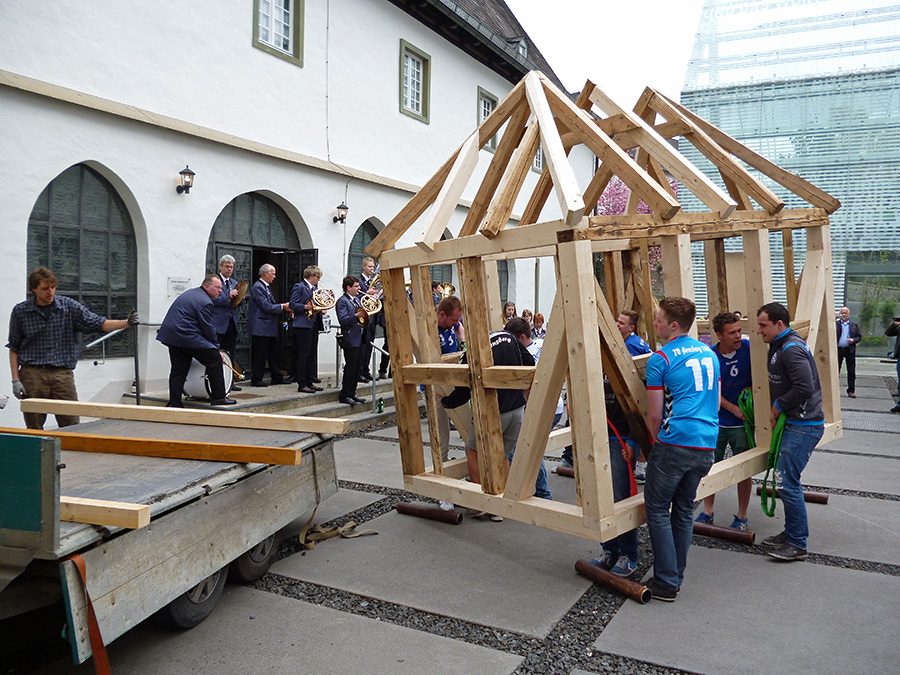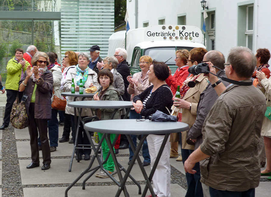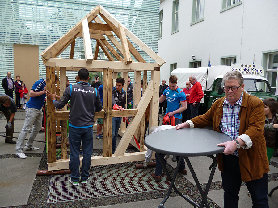 Nachdem Sven Meißner den Richtspruch aufgesagt hatte, weihte Bürgermeister Hans-Josef Vogel – im Zusammenspiel mit einem April-Regenschauer – die nun fertiggestellten Bürgergärten auch offiziell ein. Er erinnerte an die Besonderheit, dass das Projekt Bürgergärten schon nach Fertigstellung des ersten Bauabschnitts preisgekrönt worden sei und 2012 in Berlin einen Preis für Stadtentwicklung und Baukultur bekommen habe. Er dankte allen Beteiligten, die mit viel Liebe und Engagement bei der Verwandlung eines früher privaten in einen öffentlichen Bereich ein wahres Kleinod geschaffen hätten. Vogel schwärmte von einer fast toskanischen Situation. Alte Bäumen, Rosen- und Staudenbeete, ein verzweigtes Wegenetz, Sonnenliegen und die Aussichtsplattform mit Gartenhäuschen und Ruhrblick ergänzen den ersten Bauabschnitt mit den beiden alten Gartenhäuschen und schaffen über eine Brücke über den Mühlengraben den Anschluss an den Ruhrtalradweg. Dieser Anschluss sei ganz wichtig, so Vogel, denn die Bürgergärten seien eine Attraktion für die Arnsberger, für ihre Gäste und für die vielen Radtouristen, die eingeladen werden sollen, hier eine Pause und möglichst auch einen Abstecher ins Klassizismusviertel und die Altstadt zu machen. Und die Erfahrungen aus den letzten sonnigen Tagen zeigen, dass dieses Angebot auch angenommen wird.