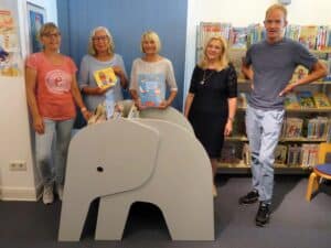Mit Hilfe des Fördervereins der Stadtbücherei Sundern und mit Unterstützung der Sparkasse Arnsberg-Sundern konnte jetzt ein neues Bücherregal in Form eines knuddeligen Elefanten angeschafft werden, der die Suche nach neuen Bilderbüchern erleichtert. Der kleine Elefant, der noch keinen Namen hat, macht die Kinderleseecke attraktiver und ist ein echter Blickfang.