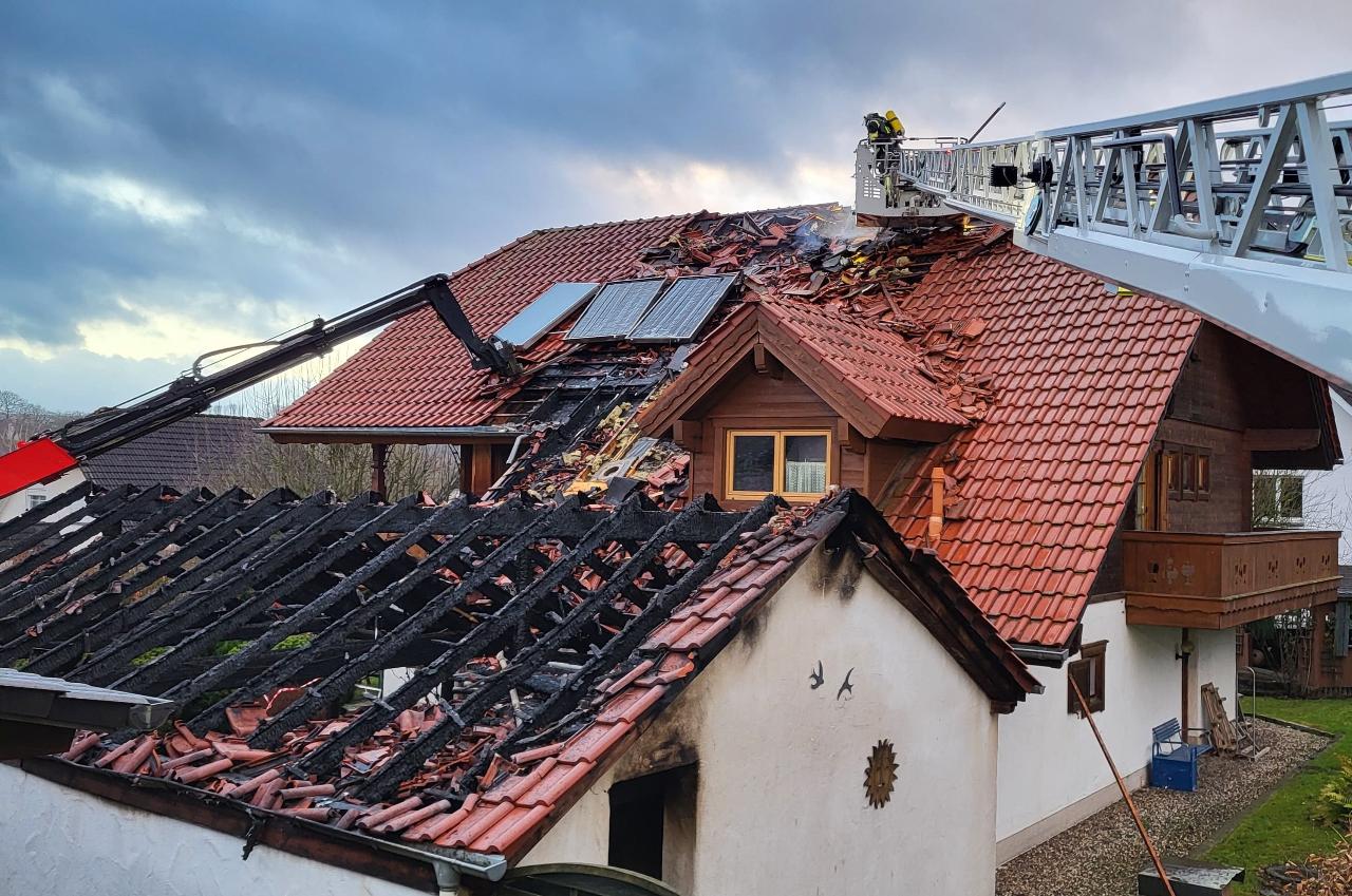 Auf­grund der Voll­holz­bau­wei­se des Hau­ses dau­er­ten die Nach­lösch­ar­bei­ten bis etwa 19 Uhr. Eine gro­ße Flä­che des Daches muss­te geöff­net und auf Glut­nes­ter kon­trol­liert wer­den. Zum Abschluss wur­de die Ein­satz­stel­le an die Kri­mi­nal­po­li­zei über­ge­ben. Die Bewoh­ner des Hau­ses kamen vor­über­ge­hend in einer Pfle­ge­un­ter­kunft und bei Nach­barn unter. Der Ener­gie­ver­sor­ger trenn­te das Gebäu­de von der Strom- und Gasversorgung.