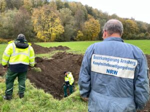 Arnsberg. Am Montagvormittag vermeldet die Stadt Arnsberg nach erfolgter Aufgrabung einer mutmaßlichen Weltkriegsbombe in Obereimer Fehlalarm. Messungen und Bildauswertungen hatten mit großer Wahrscheinlichkeit auf einen möglichen Blindgänger in Obereimer hingewiesen. Der Verdachtspunkt wurde heute Vormittag aufgegraben. Nach knapp einer Stunde bestand Gewissheit: kein Fund am Verdachtspunkt.