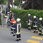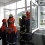 Die Einsatzkräfte der Feuerwehr leiteten als wichtigste Aufgabe nach einer ersten Erkundung umgehend die Menschenrettung aus dem Kellerbereich und aus der oberen Etage des betroffenen Gebäudes ein. Während die Wehren aus Arnsberg und Wennigloh den vermissten Fahrer des Gabelstaplers aus dem komplett verrauchten Keller retteten, befreite die Löschgruppe Breitenbruch mit Unterstützung der Mannschaft der Hauptwache Arnsberg die drei von Jugendfeuerwehrangehörigen gemimten eingeschlossenen Personen im Obergeschoss mit der Drehleiter aus ihrer misslichen Lage. Zeitgleich wurde der Brand im Keller mit mehreren Atemschutz-Trupps bekämpft und war schnell unter Kontrolle. Anschließend wurde der verqualmte Bereich mit mehreren Hochleistungslüftern vom Brandrauch befreit.
