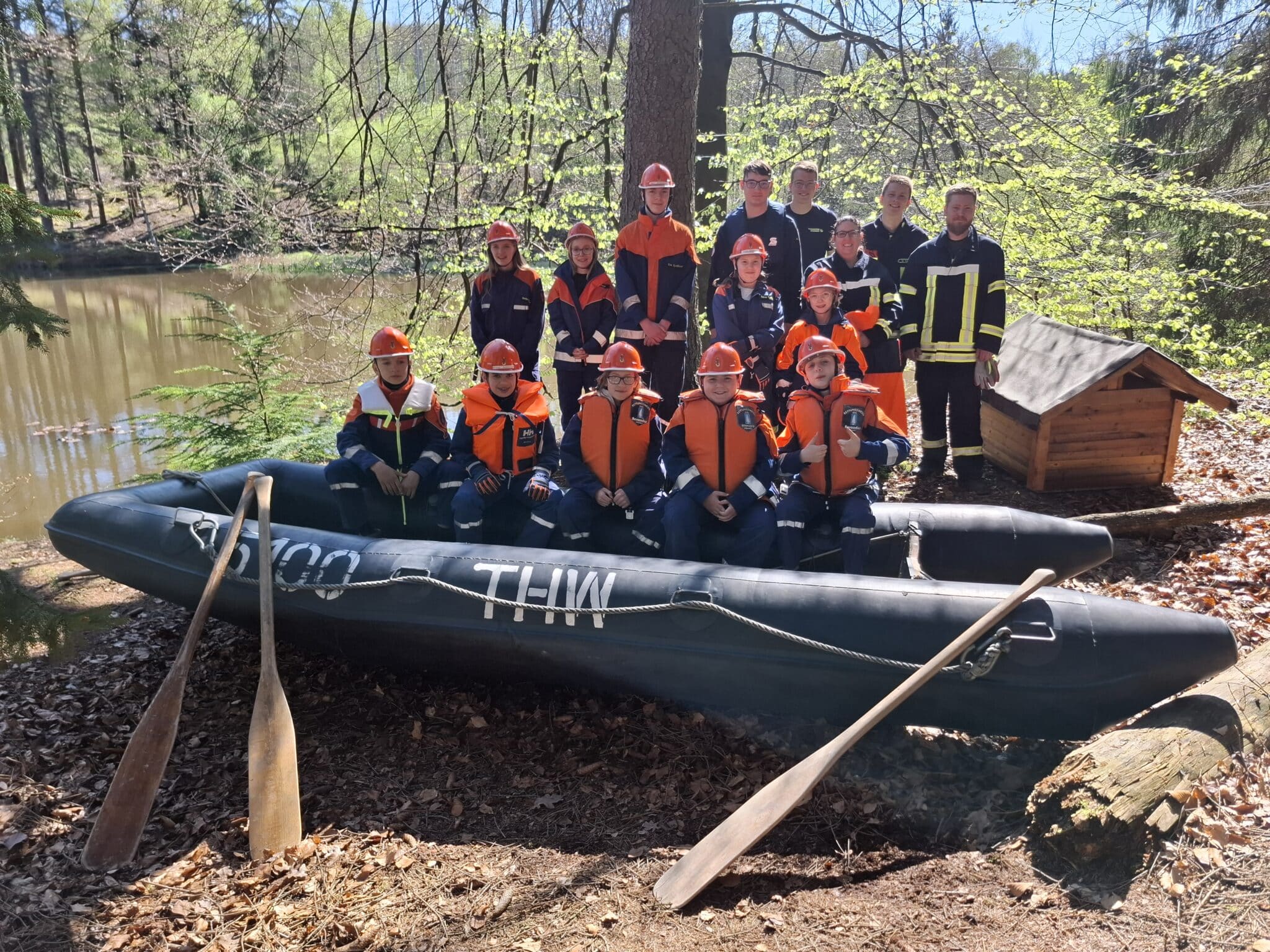 Nach einigen Wochen harter Arbeit war das Entenhaus schließlich fertiggestellt. Ein besonderer Höhepunkt des Projekts war die Einsetzung des Entenhauses auf den Wanneteich. Hierbei erhielt die Jugendfeuerwehr tatkräftige Unterstützung vom Technischen Hilfswerk OV Arnsberg (THW). Mit Hilfe eines THW-Bootes wurde das Entenhaus sicher auf den Teich gesetzt. Diese Zusammenarbeit zwischen der Jugendfeuerwehr und dem THW war nicht nur praktisch, sondern stärkte das Verständnis für die Arbeit der verschiedenen Organisationen.