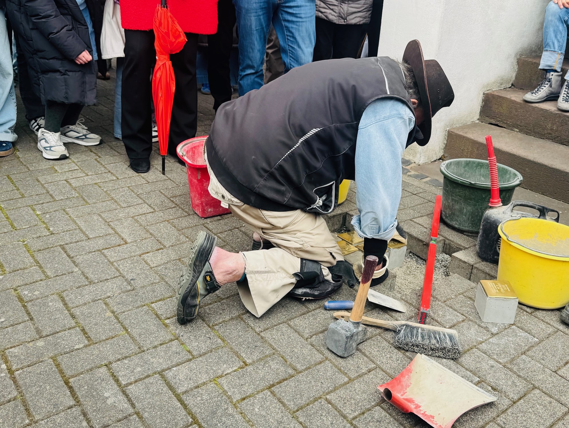 Arns­berg. Ein stil­ler Moment, der bewegt: In Arns­berg hat der Künstler Gun­ter Dem­nig erneut Stol­per­stei­ne ver­legt – klei­ne Mes­sing­plat­ten, ein­ge­las­sen ins Stra­ßen­pflas­ter, die an die Schick­sa­le jüdischer Bürgerinnen und Bürger erin­nern, die wäh­rend der NS-Zeit ver­schleppt und ermor­det wurden.
