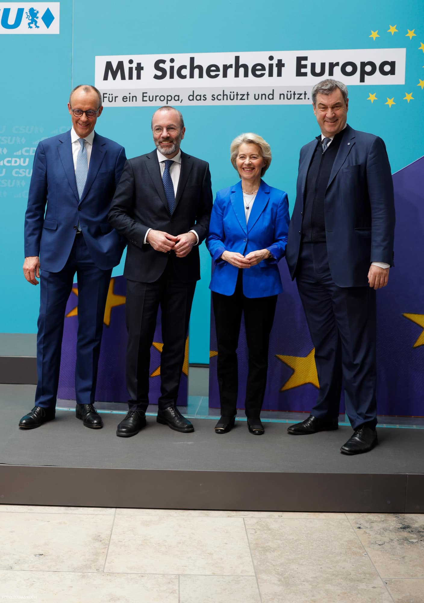 Friedrich Merz: „CDU und CSU haben zusammen mit Ursula von der Leyen die Europawahlen in Deutschland und wohl auch in der gesamten Europäischen Union gewonnen. Heute ist ein guter Tag für die Union. Wir sind wieder zurück – und zwar mit großem Abstand auf Platz 1 unter den deutschen Parteien“.