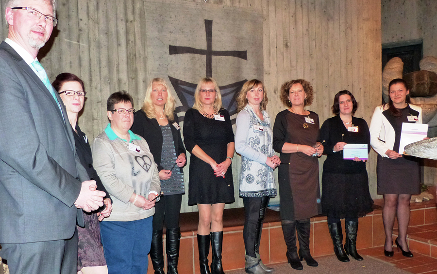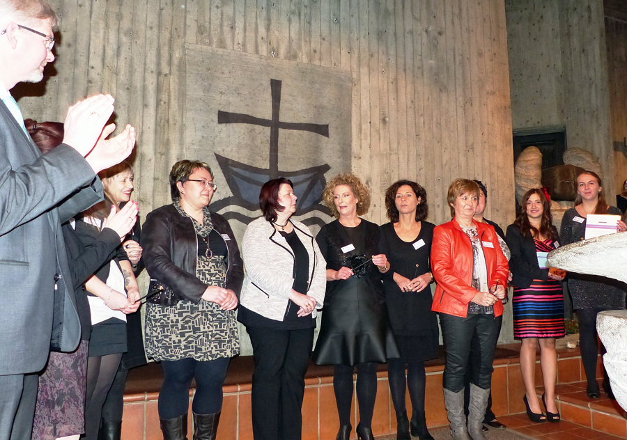 Die Fei­er war in Eike Strö­bels Augen ein magi­scher Moment. Die Fach­be­ra­te­rin für die Kin­der­ta­ges­stät­ten im Kir­chen­kreis  Arns­berg zähl­te magi­sche Momen­te im Leben von Kin­dern, Eltern und Erzie­he­rin­nen auf. „Magi­sche Momen­te ver­lei­hen Krön­chen“, sag­te sie und über­reich­te allen Aus­ge­zeich­ne­ten Blei­stif­te mit gol­de­nen Krön­chen als Dan­ke­schön für die Arbeit, die zusätz­lich zum „nor­ma­len“ Kin­der­gar­ten­all­tag geleis­tet wor­den ist. Eli­sa­beth Hein-Schmidt bestell­te Grü­ße von der Regie­rungs­prä­si­den­tin. Sie set­ze dar­auf, dass das Kin­der­gar­ten­team, die Kin­dern, die Eltern und die Kir­chen­ge­mein­den vom Qua­li­täts­pro­zess profitieren.
