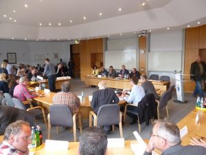 Ein Bün­del von frei­wil­li­gen Leis­tun­gen ist gekürzt, ver­scho­ben oder ganz gestri­chen wor­den, was bis zu Mit­glieds­bei­trä­gen und Zeit­schrif­ten­abos geht. Sozia­le Leis­tun­gen sind dabei aller­dings nach ein­hel­li­gem Wil­len geschont wor­den und auch Abga­ben­er­hö­hun­gen für die Bür­ger soll es 2015 noch nicht geben. Für die städ­ti­schen Beam­ten wer­den anste­hen­de Beför­de­run­gen auf den 1. August ver­scho­ben und geplan­ten Neu­ein­stel­lun­gen eines Pres­se­spre­chers und eines Wirt­schafts­för­de­rers sind für 2015 vom Tisch. Die CDU hat zudem ihren Antrag auf zusätz­li­che 20.000 Euro für die Frei­wil­li­ge Feu­er­wehr zurück­ge­nom­men. Um das Ziel der Schwar­zen Null im Haus­halt im Jahr 2022 zu errei­chen, sind nach jet­zi­gem Stand aber ab 2016 Erhö­hun­gen der Grund­steu­er und der Was­ser- und Abwas­ser­ge­büh­ren erfor­der­lich. Auch ein sozi­al­ver­träg­li­cher Per­so­nal­ab­bau – zehn Pro­zent der Rat­haus­mit­ar­bei­ter in den kom­men­den sie­ben Jah­ren – gehört zum Paket für die kom­men­den Jah­re, in dem ein­zel­ne Spar­vor­schlä­ge aller­dings noch gegen ande­re aus­ge­wech­selt wer­den könn­ten. Die Haus­halts­spre­cher aller Par­tei­en bekräf­tig­ten in ihren Reden den Wunsch, im Geis­te der Gesprä­che der letz­ten Tage wei­ter­zu­ar­bei­ten. Gleich­zei­tig prä­sen­tier­ten sie aber auch schon eine Rei­he von Punk­ten, die ihnen dabei wich­tig sind, die sich aber mög­li­cher­wei­se nicht mehr so ein­fach unter einen Hut brin­gen las­sen. Einig waren sich aber alle, dass es mit dem nächs­ten Haus­halt nicht so lan­ge dau­ern soll wie dies­mal und das gleich mor­gen mit der Arbeit begon­nen wer­den soll.