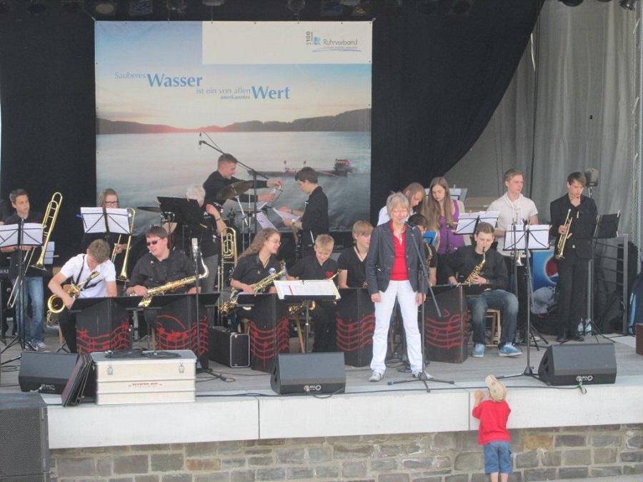 Der Jubiläumsgast, das Jugendjazzorchester, besteht seit 1975 und ist heute das führende Ensemble seiner Art. NRW war das erste Bundesland, das mit Unterstützung seines damaligen Ministerpräsidenten Johannes Rau ein Jugend-Jazzorchester einrichtete und förderte. Es wurde gegründet, um auch auf dem Gebiet des Jazz eine angemessene künstlerische Nachwuchsförderung zu betreiben. Von den bislang rund 500 mitwirkenden Jugendlichen ist etwa ein Drittel heute professionell musikalisch tätig. Regelmäßige Auslandstourneen führten das Ensemble in alle Erdteile. Die letze Tournee ging nach Island. Das Repertoire umfasst vor allem Eigenkompositionen und Arrangements der Leiter, die auf die Besetzung und spielerischen Möglichkeiten der Band zugeschnitten sind. Die Bandbreite geht von traditionellen Stücken bis zu zeitgenössischen Strömungen. Acht Tonträgerproduktionen sind ein Beleg für vielfältige Aktivitäten und die stetige Präsenz in der Jazzszene. Bewerber können sich über den Landeswettbewerb ‚Jugend jazzt‘ oder durch Auditions für das Orchester qualifizieren. An diesem Abend leiten die Band Gabriel Pérez und Stefan Pfeifer-Galilea.