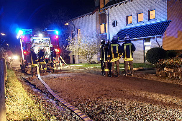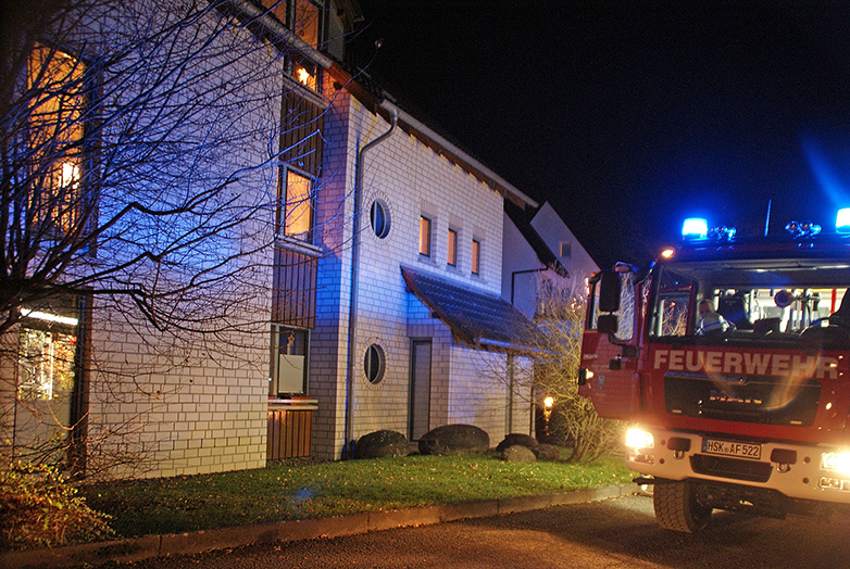 Ein Bewohner hatte der Feuerwehr-Leitstelle in Meschede den Unfall per Notruf gemeldet. Bereits im Laufe des Telefonats wies der Leitstellen-Disponent die Hausbewohner an, das Gebäude umgehend zu verlassen. So waren beim Eintreffen der Einsatzkräfte am Schadensort bereits alle Personen in Sicherheit, und die Feuerwehr-Einheiten begannen umgehend damit, zur Sicherheit Brandbekämpfungsmaßnahmen vorzubereiten. Es wurde ein Einsatz-Trupp unter schwerem Atemschutz ins Gebäude geschickt, um die Lage zu erkunden und bei Bedarf sofort Maßnahmen zur Gefahrenabwehr zu ergreifen.