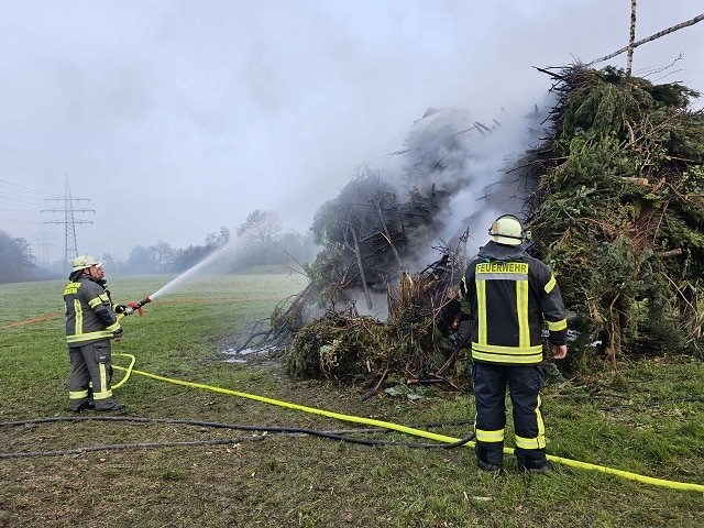 Arnsberg/Bruchhausen. Am Ostermorgen wurde der Feuerwehr ein brennendes Osterfeuer neben dem Sportplatz in Bruchhausen gemeldet. Da das Osterfeuer erst am Abend entzündet werden sollte, handelte es sich nicht um ein geplantes Abbrennen.