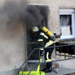 An einem Fenster im 1. Obergeschoss machte sich eine Frau bemerkbar, die ältere Dame wurde von den Wehrmännern mit einer Fluchthaube ausgestattet und ins Freie gebracht. Beide Geretteten und auch die Bewohner der betroffenen Wohnung wurden von Rettungsdienst und Notarzt versorgt. Wegen der Ungewissheit, ob sich noch mehr Personen in dem Gebäude aufhalten, erhöhte die Einsatzleitung das Alarmstichwort, weitere Kräfte rückten zum Ginsterweg an. Nachdem der Brand gelöscht war, durchsuchte die Feuerwehr mit einer Wärmebildkamera die einzelnen Stockwerke. Bis die polizeilichen Ermittlungen abgeschlossen sind, bleibt das Gebäude gesperrt.