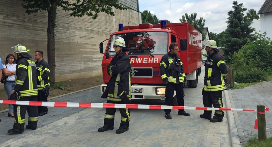 Etwa 15 Feuerwehrleute von der Wache Neheim, dem Löschzug Neheim sowie der ABC-Komponente rückten mit drei Fahrzeugen aus. Weil nicht sicher war, wie hoch das Gefahrenpotential für die Öffentlichkeit sein könnte, wurde der gesamte Spielplatz abgesperrt. Wehrleute suchten dann die Flächen ab und fanden die unbekannte Substanz auf einer Sitzbank, einer Rutsche sowie an einem Papierkorb auf dem Spielplatz. Da nicht sicher war, ob auch noch andere Flächen betroffen waren, wurde das gesamte Gelände abgesucht.
