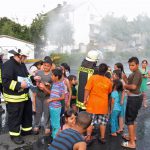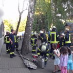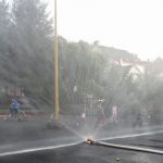 Und zum Abschluss hatten die Männer und Frauen der Feuerwehr noch eine besondere Überraschung für die in der Asylunterkunft lebenden Kinder parat: Mit Hilfe eines sogenannten Hydroschildes erzeugten sie eine Wasserwand, durch die die Kinder laufen und sich angesichts der hochsommerlichen Temperaturen erfrischen konnten. Dieses Angebot nahmen die Kinder und Jugendlichen begeistert an. Zudem spendierte der Basislöschzug 1 den jungen Übungsbeobachtern noch eine Runde Wasser-Eis, was ein dankbares Lächeln auf die Gesichter der Kleinen zauberte. „So verabschiedeten sich die Einsatzkräfte und die Asylsuchenden in der Gewissheit voneinander, sich gegenseitig ein Stück weit besser kennengelernt und einen ganz realen Einblick in die Lebenswirklichkeit des anderen gewonnen zu haben,“ schließt Peter Krämer seinen Bericht.