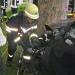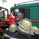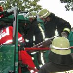 Hüsten/Müschede. Die Feuerwehreinheiten aus Hüsten und Müschede, die zusammen den Basislöschzug 5 bilden, sowie das Deutsche Rote Kreuz (DRK) aus Hüsten waren jetzt im Rahmen einer Einsatz-Übung gemeinsam gefordert. Als Übungsszenario diente ein Verkehrsunfall zwischen einem Lkw und einem Pkw. Gemäß der Vorgabe hatte der Lkw den Pkw von hinten vor einen Baum geschoben.