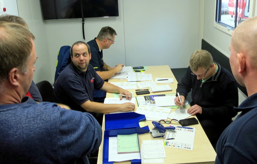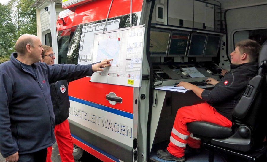 Um so eine große Schadenslage funk- und führungstechnisch reibungslos mit den verschiedenen Hilfsorganisationen abzuarbeiten, bedarf es eines jährlichen Übungsszenarios, bei dem das Zusammenspiel der eingesetzten Einheiten trainiert wird. So bestand die Übung zwar aus einer reiner Funkübung, der angenommene Einsatz wurde jedoch – wie für den Ernstfall erforderlich – durch die Spezialisten von Anfang bis Ende abgearbeitet, von der ersten Alarmierung, über Rückmeldungen der eingesetzten Kräfte, die Nachalarmierung bis hin zum Abschluss des fiktiven Einsatzes.