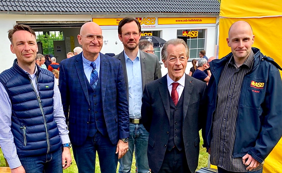 Franz Mün­te­fe­ring, Prä­si­dent des ASB Deutsch­land, Dirk Wie­se, Mit­glied des Bun­des­ta­ges und Schirm­herr der First Respon­der, Dr. Taten­horst, Vor­sit­zen­der des ASB Dort­mund, Oli­ver Buff,Geschäftsführer des ASB Dort­mund, und Bür­ger­meis­ter Ralph Bro­del waren nach Hel­le­feld gekom­men, um sich für Ein­satz und Enga­ge­ment der ehren­amt­li­chen Hel­fer zu bedan­ken und die Hel­le­fel­der Hel­fer in der Fami­lie des ASB auf­zu­neh­men. Gra­tu­lan­ten wie die Volks­bank Sau­er­land oder der Rei­ter­ver­ein Hel­le­feld lie­ßen es sich nicht neh­men und über­reich­ten  groß­zü­gi­ge Spen­den. Selbst ein Anwoh­ner aus Hel­le­feld spen­de­te, spon­tan nach der Besich­ti­gung der neu­en Räum­lich­kei­ten, einen Bea­mer für Schulungszwecke.