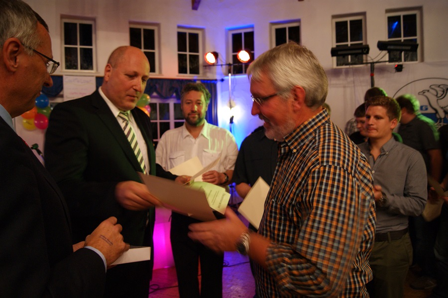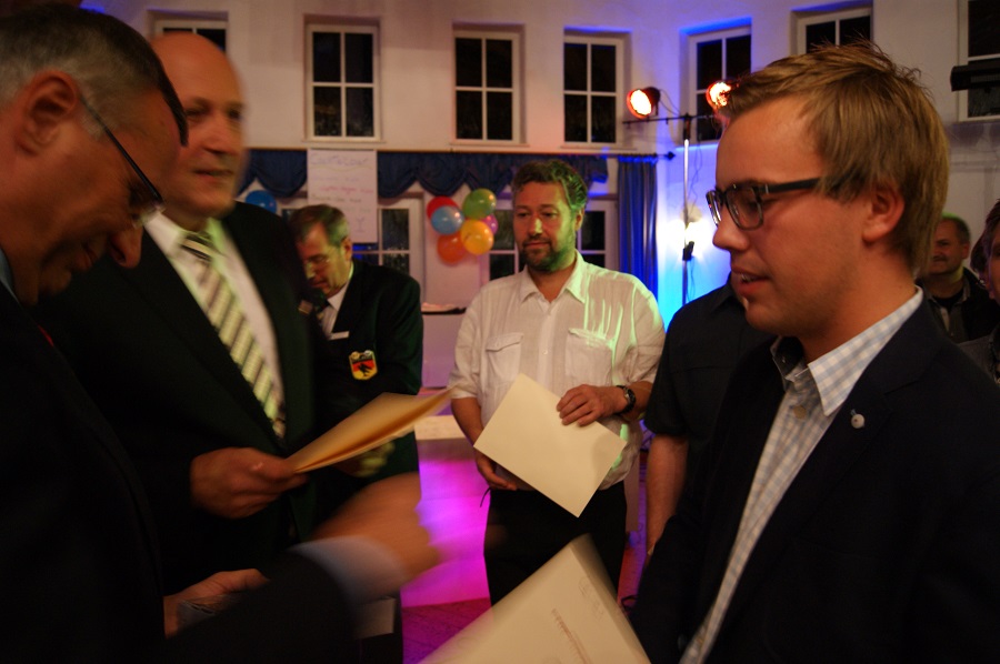Neheim/Brilon. Beim Hochwasser im Juni des vergangenen Jahres kamen 36 Helfer verschiedener Ortsgruppen des DLRG Hochsauerland zum Einsatz. Diese wurden beim Abschlussballs der DLRG Hochsauerland in Brilon, für ihre persönlichen Leistungen geehrt und erhielten eine Verleihungsurkunde und die Fluthelfernadel 2013 des Landes Sachsen-Anhalt. Stellvertretend für die Fluthelfer der Ortsgruppe Neheim-Hüsten – Sebastian Denz, Martin Ernst, Ingo Klee, Max Hoffmann, Klaus Franksmann, Max Franksmann, Fabian Schriek und Peter Schweißhelm – nahmen Peter Schweißhelm und Fabian Schriek die Auszeichnung in Empfang.