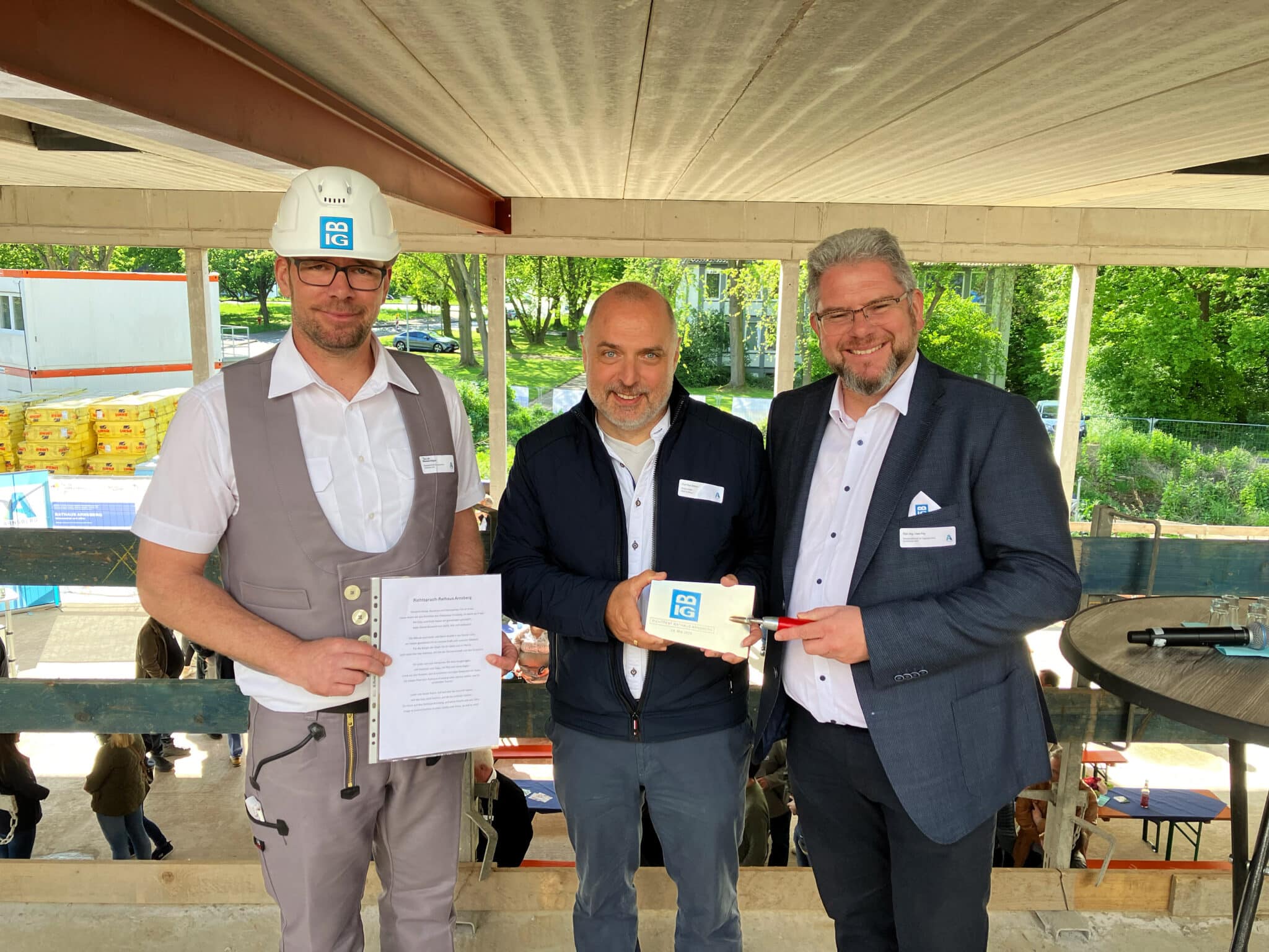 Mitglieder des Rates der Stadt Arnsberg sowie Vertreterinnen und Vertreter aus verschiedenen beteiligten Ausschüssen der Stadt trafen sich zum Richtfest mit Festakt im Rohbau des künftigen Ratssaals, der seinen Platz im Neubau findet. Zudem bestand für Interessierte schon mal die Gelegenheit, das Gebäude und seinen Aufbau im Rahmen eines Rundgangs kennen zu lernen.