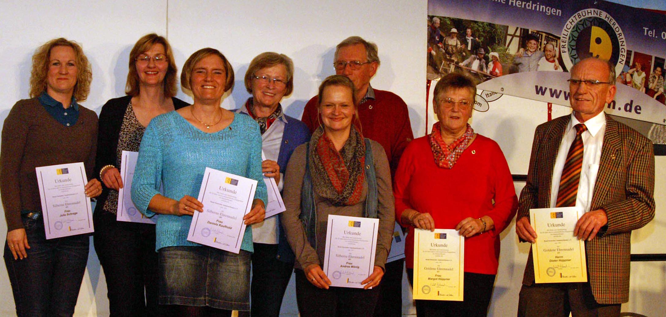 Bei den Vorstandswahlen gab es drei Veränderungen. Zweiter Vorsitzender (bisher Stefan Hecking, jetzt Thomas Lepping), Geschäftsführer (bisher Susanne Vollmer, jetzt Rainer Henning) sowie der zweite Liegenschaftswart (bisher Ulf Preuß, jetzt Olaf Grodhues) wurden neu gewählt. Im Rahmen der Generalversammlung wurden auch langjährige Mitglieder des Vereins geehrt. Die silberne Ehrennadel und die Urkunde des BDAT (Bund Deutscher Amateurtheater) für 25 Jahre aktive Arbeit im Verein bekommen Winfried und Irmgard Gröniger, Sonja Yikilmazpehlivan, Julia Schrage, Andrea Mönig, Daniela Kaufhold und Ute Henze, Die goldene Ehrennadel und die Urkunde des BDAT für 40 Jahre aktive Arbeit im Verein bekommen Dieter und Margot Hüppner. Die silberne Ehrennadel und die Urkunde der Freilichtbühne Herdringen für 25 Jahre Mitglied im Verein bekommt Josef Schulte.