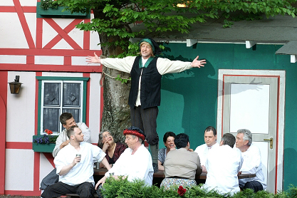 Herdringen. Auch das zweite Stück der Spielzeit 2015, „Kiss me, Kate!“, hat auf der Freilichtbühne Herdringen erfolgreich Premiere gefeiert. Eine Premiere mit Gänsehaut-Feeling. Und eine Super-Show von einem Klasse-Amateurensemble. Mit Kribbeln und Lampenfieber warten rund 45 Darsteller hinter der Bühne, während Michael Hinse, 1. Vorsitzender der Freilichtbühne Herdringen, die Bühne betritt. In seiner kurzen Ansprache stellt er die hoch engagierte Kinder- und Jugendarbeit heraus. Die Jugendgruppe der Freilichtbühne zählt rund 20 Personen und die Teenies nochmal 35. Dann geht es los und auch die jungen Leute sind im Stück aktiv dabei.