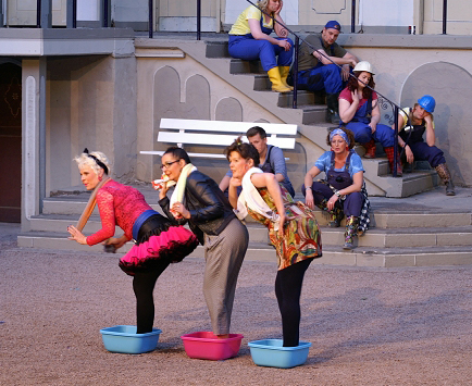 Geprägt wird die Aufführung der Freilichtbühne durch eine Super-Gesangsleistung, die Tim Erlmann und Kathrin Kleve aus dem Ensemble ‚heraus gekitzelt‘ haben, schrille Kostüme im Zeichen der 80-er Jahre und eine grandiose Gesamtleistung. Die Premierenzuschauer waren begeistert und zeigten dies mit einem lang anhaltenden Applaus. Einfach nur wunderbar. Mit dieser Musikkomödie bringt die Freilichtbühne wieder einen Broadwayklassiker nach Herdringen. Bekannte Lieder wie „Wunderbar“, „Premierenfieber“, „Schlag nach bei Shakespeare “ und noch viele mehr werden live auf der Bühne gesungen. Der Zuschauer wird entführt in die wundersame Welt des Musicals – und das alles dargestellt und gesungen von Amateuren. Da im Stück auch getanzt wird, haben die Darsteller Hilfe und Anleitung von der Regisseurin und Choreographin Patricia Hoffmann erhalten.