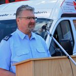 Im Anschluß an die Fahrzeugübergabe hieß, es eine Galionsfigur der Jugendfeuerwehr in Sundern aus dem Amt des Stadtjugendfeuerwehrwartes zu entlassen. Michael Müller, der seit 19 Jahren erst Stellvertreter und seit 1997 der Stadtjugendfeuerwehrwart in Sundern war, gab sein Amt nun in jüngere Hände. „Nach 25 Jahren Jugendarbeit müssen nun auch mal jüngere Hände ins Ruder greifen“, so Michael Müller. Michael trat 1988 in die Feuerwehr Sundern ein und war 1991 der geistige Vater der Jugendfeuerwehr im Löschzug Sundern, nachdem bereits in anderen Löschgruppen Jugendfeuerwehren gegründet waren. Er gab das Amt nun in die Hände von Christian Stratmann, der selbst 2004 in die Jugendfeuerwehr eingetreten war. Seit 2007 ist der Bauingenieur in der Löschgruppe Altenhellefeld aktiv.