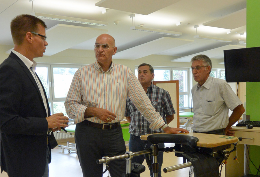 Das Akutkrankenhaus mit seinen 125 Betten ist das gesamte Jahr über praktisch ausgebucht, berichtete André Kampmann seinen Gästen. 145 Festangestellte arbeiten im Haus, darunter acht Ärzte, 67 Pflegekräfte und 27 Therapeuten. Rund 2700 Patienten kommen pro Jahr. Sie bleiben zwischen sieben und 21 Tagen in der Klinik. Verstärkt wurde in den vergangenen Jahren der ambulante Bereich. Je früher eine gezielte Therapie einsetze, desto besser seien die Erfolge. Die Krankheit könne bis heute nicht geheilt, ihr Verlauf aber verlangsamt werden. „Unser Ziel ist es, die drohende Behinderung zu verzögern, “ sagte Kampmann. Dazu brauche es qualifiziertes Personal und hoch motivierte Patienten. Beide Seiten träfen in der Sauerlandklinik zusammen. Bei dem Thema hakte Ralph Brodel ein. „Wenn durch gezielte Maßnahmen so deutliche Verbesserungen zu erreichen sind, ist es doch in ihrem Interesse, dass Physio- und Ergotherapeuten speziell für die MS-Patientinnen und Patienten ausgebildet werden“, erkundigte er sich. Eine Spezialausbildung gebe es noch nicht, bestätigte Kampmann. „Das lernen sie bei uns.“