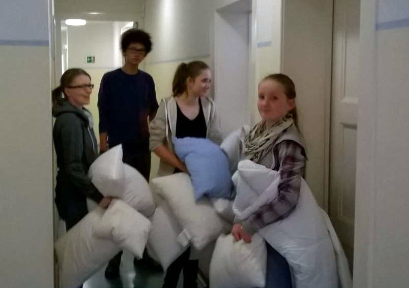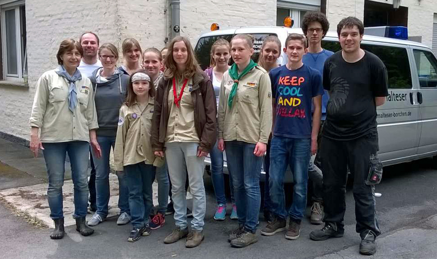 Arnsberg/Meschede. Pfadfinderinnen und Pfadfinder aus dem Bezirk Hochsauerland der Deutschen Pfadfinderschaft Sankt Georg haben am Samstag beim Aufbau einer Notunterkunft für Flüchtlinge geholfen, die kurzfristig in Meschede eingerichtet und von den Maltesern der Diözese Paderborn betrieben wird. „Am Freitag haben sich spontan fünfzehn Pfadfinder aus den Stämmen Eversberg, Arnsberg, Hüsten und Brilon für ein kurzfristiges Engagement am Samstag zusammengefunden – sogar ein Wölfling war dabei!“ berichtet Jan Hendrik Buchmann, Stammesvorsitzender der St. Georgs-Pfadfinder Hüsten. „Die ehemalige Jugendherberge Haus Dortmund in Meschede stand rund anderthalb Jahre leer und so gab es viel zu tun: Betten aufbauen, Matratzen bis in den dritten Stock schleppen, Alte Dinge entsorgen und vieles mehr. Alles ganz im Sinne der DPSG-Jahresaktion ‚Gastfreundschaft – Für Menschen auf der Flucht‘.“