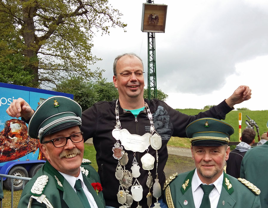 Enkhausen. Neuer König der Schützenbruderschaft St. Laurentius Enkhausen ist Andreas Brinkschulte. Der 45-jährige Gastronom und Wirt des Gasthofs Brinkschulte in Enkhausen sicherte sich die Königswürde nach einem spannenden Wettkampf mit zahlreichen Konkurrenten am Pfingstmontag um 10.30 Uhr im 324. Schuss. Gemeinsam mit seiner Ehefrau Nicole tritt er die Nachfolge von Ralf und Katja Hoffmann an. Jungschützenkönig von Enkhausen wurde anschließend der 31-jährige Landschaftsgärtner Sebastian Mimberg.