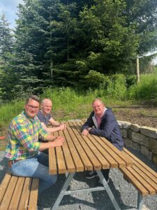 Sundern-Endof e.V. (Foto: (v.l.) der Erste Vorsitzende des Heimatvereins Endorf e.V., Florian Clute, sowie Vorstandsmitglied und Schriftführer Matthias Vollmer gemeinsam mit Detlef Lins, Geschäftsführer Naturpark Sauerland Rothaargebirge e.V., © Naturpark Sauerland Rothaargebirge e.V.)