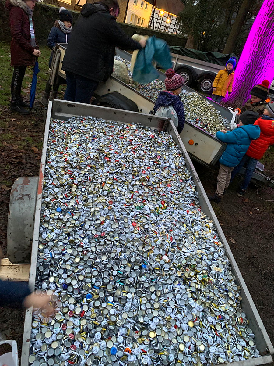 Ebenfalls positiv fiel das Fazit der Wunschbaum-Aktion am Vormittag aus. Hier sammelten die Jäger – tatkräftig unterstützt von ihrem Königspaar Ingo Kulling und Sonja Beringhoff – von den Weihnachtsmarkt-Besuchern wieder fleißig Geschenke, die in Kürze den Mädchen und Jungen im Kinderheim Marienfrieden übergeben werden.