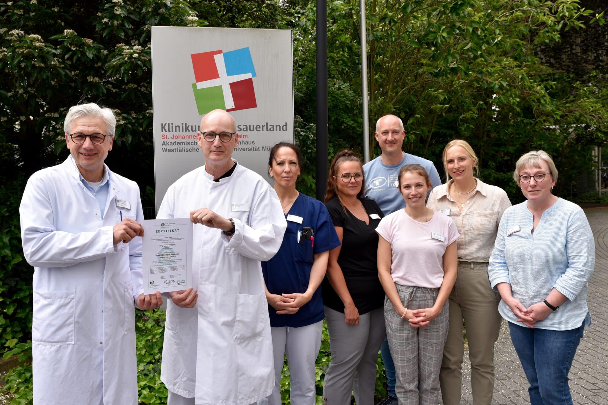 Arnsberg. Die Akut-Behandlung von älteren und hochbetagten Patienten stellt für das medizinische Team eine besondere Herausforderung dar: Die Aufnahme von älteren Patienten erfolgt häufig nach einem durch die niedergelassenen Ärzte diagnostizierten multimorbiden Krankheitsbild und oder auch als Notfall und verlangt bei der stationären Versorgung das Erkennen und Behandeln von Funktionsdefiziten und ‑risiken nach einem erprobten Standard. Die Klinik für Geriatrie / Zentrum für Altersmedizin am Klinikum Hochsauerland ist jetzt erneut für ihre hohe Fachkompetenz und ein breitgefächertes Leistungsangebot mit hoher Patientenorientierung ausgezeichnet worden. Unabhängige Prüfer vom Bundesverband Geriatrie haben die Prozesse im Detail geprüft und das Zertifikat „Qualitätssiegel Geriatrie“ erneut vergeben.