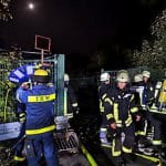 Im weiteren Verlauf musste das Dach mit Hilfe der Drehleiter geöffnet werden, da sich in der Dachverkleidung weitere Brandnester befanden. Aufgrund der Personalintensität entschloss sich der Einsatzleiter dazu, die Einheiten aus Niedereimer und Bruchhausen hinzuzualarmieren. Unterstützung erhielt die Feuerwehr von den Fachgruppen Notversorgung und Bergung des THW Arnsberg, die zufällig gerade an der Riggenweide übten. Das THW hatte auch den Brand rechtzeitig entdeckt und gemeldet, was schlimmeres verhinderte und bei der Ausleuchtung der Einsatzstelle geholfen. „Für die professionelle Unterstützung bedankt sich die Feuerwehr“, so Sprecher Mark Schroller.