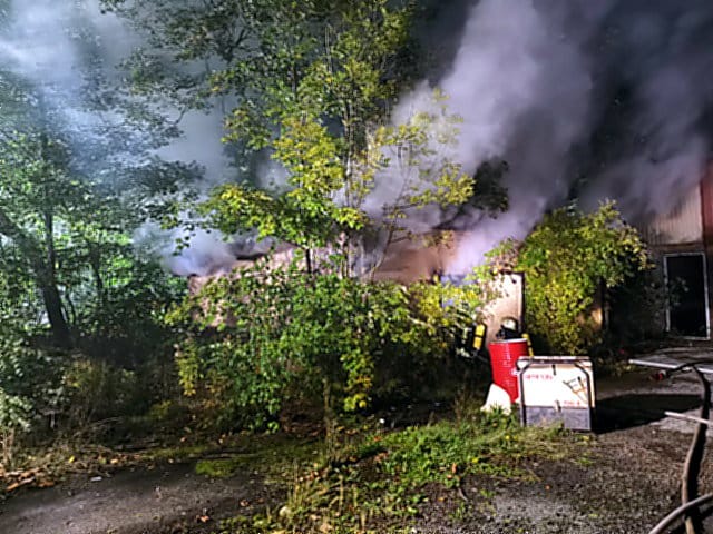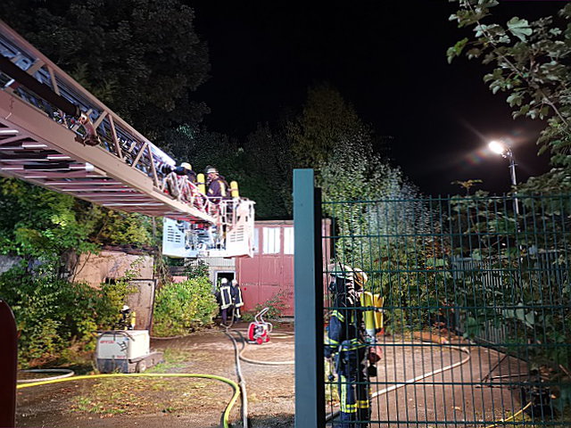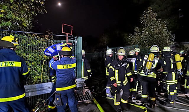 Im wei­te­ren Ver­lauf muss­te das Dach mit Hil­fe der Dreh­lei­ter geöff­net wer­den, da sich in der Dach­ver­klei­dung wei­te­re Brand­nes­ter befan­den. Auf­grund der Per­so­nal­in­ten­si­tät ent­schloss sich der Ein­satz­lei­ter dazu, die Ein­hei­ten aus Nie­der­ei­mer und Bruch­hau­sen hin­zu­zu­al­ar­mie­ren. Unter­stüt­zung  erhielt die Feu­er­wehr von den Fach­grup­pen Not­ver­sor­gung und Ber­gung des THW Arns­berg, die zufäl­lig gera­de an der Rig­gen­wei­de übten. Das THW hat­te auch den Brand recht­zei­tig ent­deckt und gemel­det, was schlim­me­res ver­hin­der­te und bei der Aus­leuch­tung der Ein­satz­stel­le gehol­fen. „Für die pro­fes­sio­nel­le Unter­stüt­zung bedankt sich die Feu­er­wehr“, so Spre­cher Mark Schroller.