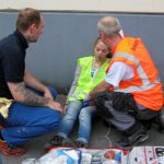 Als am Samstag um kurz nach 15 Uhr die ersten Feuerwehreinheiten den Schadensort erreichten, hatten sich die Mitarbeiter der Spätschicht und ein Teil der „Verletzten“ – diese wurden von der DLRG aus Sundern, Langscheid und Amecke, den „Mimen am Sorpesee“ gespielt – bereits ins Freie gerettet. Nun galt es, schnell die weiteren Verletzten zu retten und sie dem Rettungsdienst zur weiteren Versorgung zu übergeben. Hierfür wurde umgehend ein Verletztensammelplatz eingerichtet. Im Verlauf der Übung wurden insgesamt rund 25 Personen betreut und versorgt.
