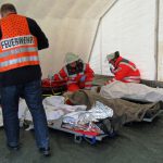 Parallel zur Arbeit der Rettungskräfte kam auch der Krisenstab der Firma WEPA zusammen und nahm seine Arbeit auf. Für ihn galt es, Informationen an die Einsatzkräfte zu geben, aber auch die Weitergabe von Informationen an die Medien zu koordinieren. Nach rund zwei Stunden war der letzte Patient versorgt, und die Einsatzkräfte konnten ihre Fahrzeuge wieder einsatzbereit machen. An der Übung, die von einem Team aus Feuerwehr, DRK und DLRG ausgearbeitet worden war, nahmen rund 90 Personen teil. Der stellvertretende Wehrführer Harald Kroll war als Übungsbeobachter vor Ort und konnte bei der anschließenden Manöverkritik nur wenig Optimierungspotential aufzeigen, welches nun umgesetzt wird. Angesichts der guten Zusammenarbeit mit dem DRK wird es im kommenden Jahr weitere gemeinsame Übungen geben, wie Basislöschzugführer Michael Wiesenthal noch während der Nachbesprechung bekannt gab.