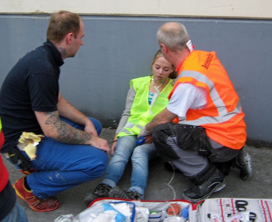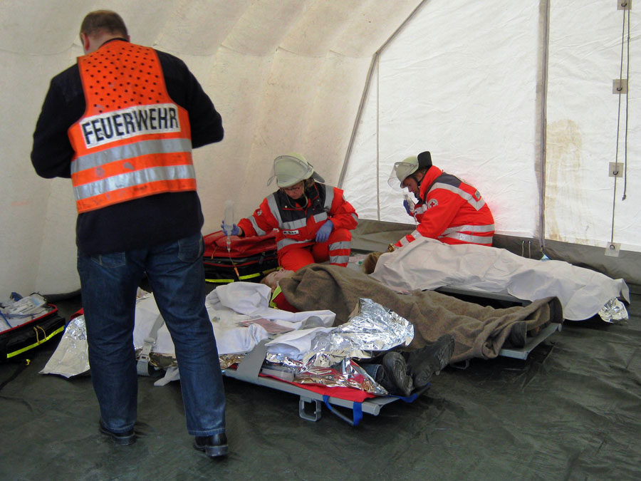 Als am Samstag um kurz nach 15 Uhr die ersten Feuerwehreinheiten den Schadensort erreichten, hatten sich die Mitarbeiter der Spätschicht und ein Teil der „Verletzten“ – diese wurden von der DLRG aus Sundern, Langscheid und Amecke, den „Mimen am Sorpesee“ gespielt – bereits ins Freie gerettet. Nun galt es, schnell die weiteren Verletzten zu retten und sie dem Rettungsdienst zur weiteren Versorgung zu übergeben. Hierfür wurde umgehend ein Verletztensammelplatz eingerichtet. Im Verlauf der Übung wurden insgesamt rund 25 Personen betreut und versorgt.
