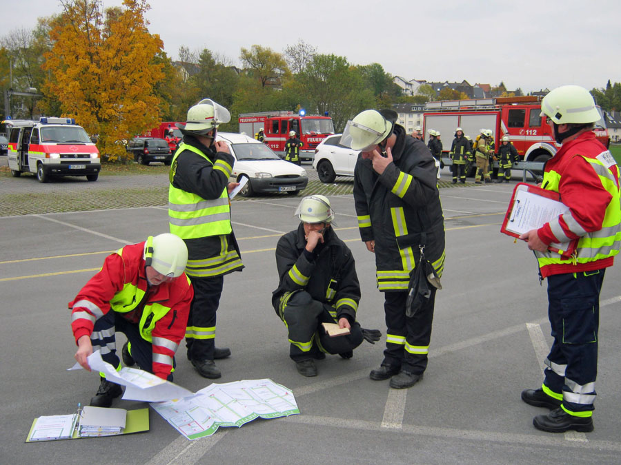 Parallel zur Arbeit der Rettungskräfte kam auch der Krisenstab der Firma WEPA zusammen und nahm seine Arbeit auf. Für ihn galt es, Informationen an die Einsatzkräfte zu geben, aber auch die Weitergabe von Informationen an die Medien zu koordinieren. Nach rund zwei Stunden war der letzte Patient versorgt, und die Einsatzkräfte konnten ihre Fahrzeuge wieder einsatzbereit machen. An der Übung, die von einem Team aus Feuerwehr, DRK und DLRG ausgearbeitet worden war, nahmen rund 90 Personen teil. Der stellvertretende Wehrführer Harald Kroll war als Übungsbeobachter vor Ort und konnte bei der anschließenden Manöverkritik nur wenig Optimierungspotential aufzeigen, welches nun umgesetzt wird. Angesichts der guten Zusammenarbeit mit dem DRK wird es im kommenden Jahr weitere gemeinsame Übungen geben, wie Basislöschzugführer Michael Wiesenthal noch während der Nachbesprechung bekannt gab.