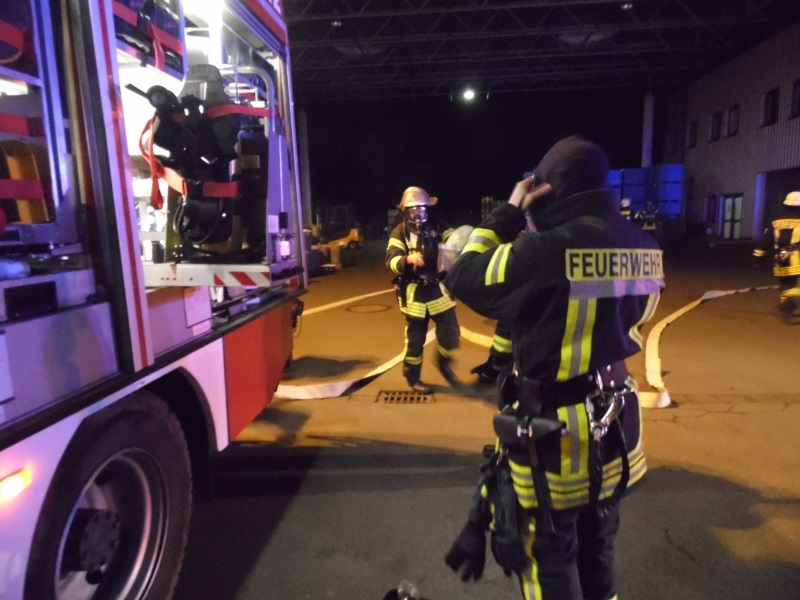 Sundern/Stemel. Die Jahresabschlussübung des Löschzuges Sundern fand in diesem Jahr auf dem Werksgelände der Firma Lübke & Vogt, einem Hersteller von Gummi-Formteilen, an der Hüstener Straße in Sundern statt. Da sich das Werksgelände auch über die Grenzen der Kernstadt hinaus bis in den Ortsteil Stemel erschließt, wurde die Übung gemeinsam mit der Löschgruppe Stemel durchgeführt.