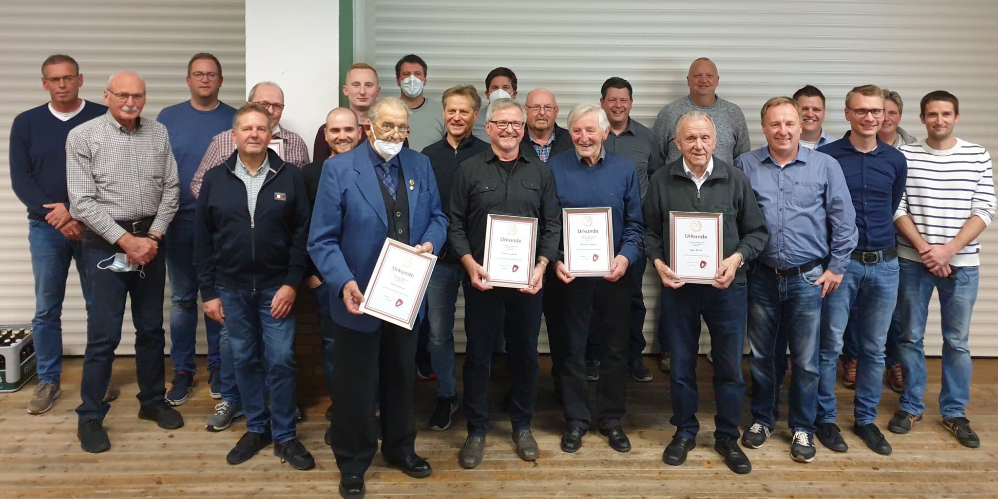 Zu Beginn der Versammlung standen zahlreiche Ehrungen für langjährige Mitglieder an. Insgesamt 46 aktive und passive „TuSler“ wurden für ihre Mitgliedschaften geehrt. 22-mal konnte der Vorstand die bronzene Eherennadel für 25 Jahre Mitgliedschaft vergeben. Für 40 Jahre Treue gab es 11-mal die silberne Nadel. 7 Mitglieder erhielten die Auszeichnung für 50-jährige Mitgliedschaft. 60 Jahre TuS-Zugehörigkeit stand für Manfred Kosik an. Gleich 4 Mitgliedern konnte die Ehrenurkunde für 70 Jahre Mitgliedschaft überreicht werden, Friedel Köppikus und Heinz Pfennig sowie die beiden persönlich anwesenden Klaus Schulte und Albrecht Kinnbacher. Eine besondere Ehre wurde Johannes Wojcik zu Teil, der dem TuS sogar schon seit 75 Jahren die Treue hält.