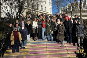 Neheim. Nach der bundesweit beachteten Debatte um die teilweise in Schwarz-Rot-Gold übermalte Regenbogentreppe am Neheimer Busbahnhof hat es am heutigen Sonntag eine demonstrative Solidaritätsaktion gegeben: Zahlreiche Mitglieder und Unterstützer der Grünen versammelten sich gemeinsam mit Verena Verspohl auf der „Regenbogentreppe“ und veröffentlichten dazu ein Gruppenfoto in den sozialen Netzwerken.