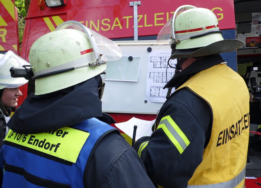 Da sich der Brand in der Zwi­schen­zeit auf den Dach­stuhl aus­ge­brei­tet hat­te, wur­de neben der Brand­be­kämp­fung im Gebäu­de ein zusätz­li­cher Lösch­an­griff über das Wen­de­rohr der Dreh­lei­ter und meh­re­re Strahl­roh­re im Außen­an­griff vor­ge­nom­men. Die Was­ser­ver­sor­gung wur­de durch die Lösch­grup­pen Schön­holt­hau­sen und Schli­prüt­hen von der nahe­ge­le­ge­nen Röhr her­ge­stellt. Nach rund einer Stun­de konn­te der Übungs­lei­ter Dirk Weber aus Endorf ein durch­weg posi­ti­ves Fazit zie­hen. Die von ihm gestell­ten und aus­ge­ar­bei­te­ten Übungs­zie­le wur­den erreicht. Am Feu­er­wehr­haus in Endorf gab es im Anschluss noch eine kur­ze Übungs­nach­be­spre­chung. Die Betei­lig­ten waren sich einig, dass die Zusam­men­ar­beit aller betei­lig­ten Ein­hei­ten in den nächs­ten Jah­ren ver­stärkt wer­den soll.