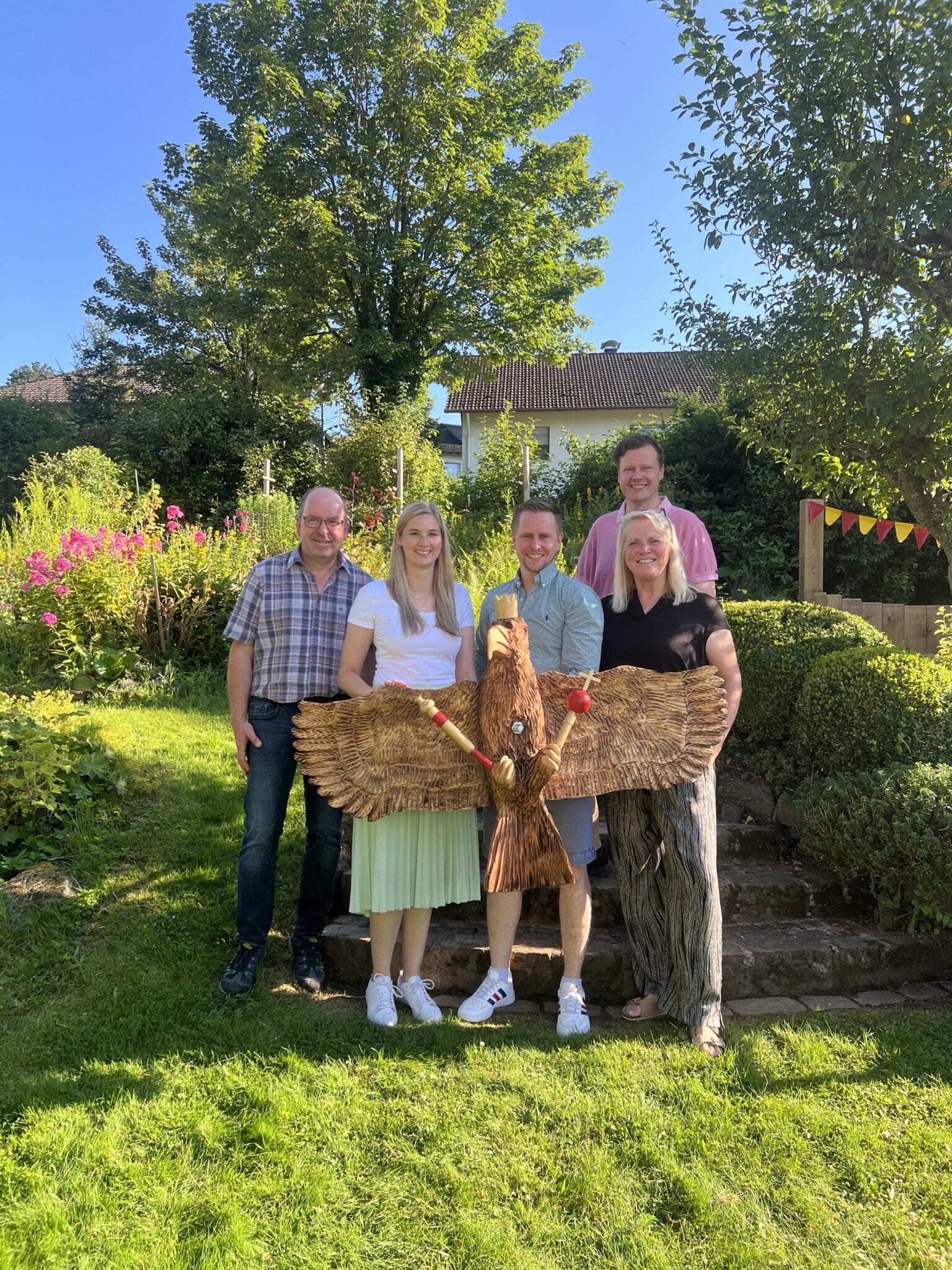 Hagen. Als Vorbereitung auf das Hagener Schützenfest vom 10. bis 12. August erfolgte jetzt die traditionelle Abnahme des Schützenvogels durch das amtierende Königspaar Diana Fitscher und Bernd Appelhans sowie Oberst Benjamin Hillebrand und Hauptmann Klaus-Peter Grote. Der Aar wurde von Claudia Grote in Handarbeit gefertigt. Nun kann gespannt gewartet werden, welcher Schütze dieses Jahr den Vogel aus dem Kasten holt und neuer König wird.