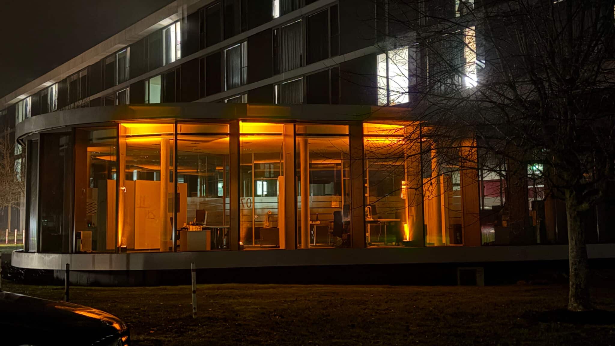 Oran­ge leuch­tet gegen Gewalt: Das Foy­er der Hand­werks­kam­mer Süd­west­fa­len in Arns­berg wird im Rah­men der Akti­on ‚Oran­ge your City‘ wäh­rend der Akti­ons­wo­chen in kräf­ti­gem Oran­ge beleuch­tet. (Foto: Hand­werks­kam­mer Südwestfalen)