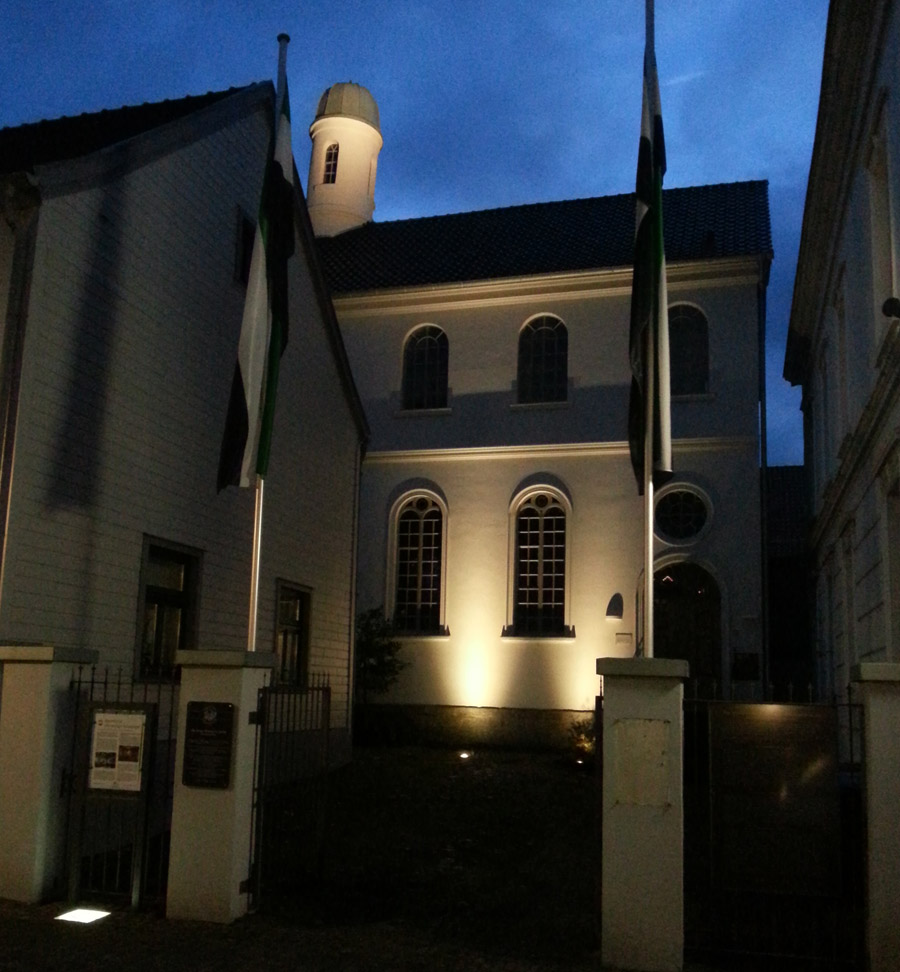 Neheim. Rechtzeitig zum Jubiläumsjahr hat das Haus Neheimer Jäger eine Außenbeleuchtung erhalten. Mit einer modernen LED-Beleuchtung wird die ehemalige Neheimer Synagoge nun abends angestrahlt. Dadurch erfährt das Gebäude nochmals eine Aufwertung. Insbesondere kann der Turm auch bei Dunkelheit als markanter Punkt in der Neheimer Altstadt wahrgenommen werden. Die Kosten für die Installation der Beleuchtung wurden vollständig vom „Förderverein Haus Neheimer Jäger (ehemalige Synagoge) e.V.“ und der BürgerStiftung Arnsberg übernommen.