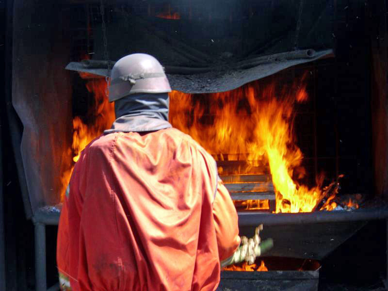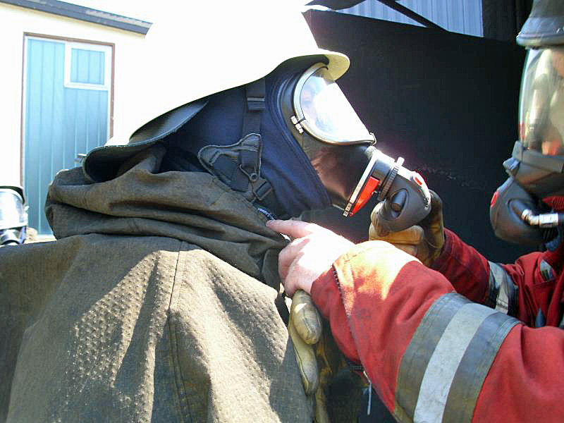 Im BOS Trai­nig­zen­trum star­te­te der „Tag in die Wär­me“ um 9 Uhr mit einer Vor­be­spre­chung und anschlie­ßen­den Bege­hung der Anla­ge. Nach einem Strahl­rohr­trai­ning, bei dem sich die Feu­er­wehr­män­ner unter Anlei­tung der Trai­ner mit ihrem Grund­hand­werks­zeug, dem Hohl­strahl­rohr ver­traut machen konn­ten, wur­de es für die Teil­neh­mer des Trai­nings heiß. Sie konn­ten im ers­ten von drei Durch­gän­gen in der holz­be­feu­er­ten Anla­ge beob­ach­ten, wie sich ein Feu­er vom Ent­ste­hung­brand bis hin zum Voll­brand ent­wi­ckelt und wie sich Flam­men, Rauch und Wär­me dabei ver­hal­ten. In zwei wei­te­ren Übun­gen gin­gen die Trupps zur Brand­be­kämp­fung sowie zu Ret­tungs­übun­gen in die Anla­ge vor, wobei die Teil­neh­mer es auch hier mit ech­tem Feu­er und Rauch zu tun hat­ten. In der Anla­ge, die aus Con­tai­nern besteht, hat­ten die Teil­neh­mer auf etwa 125 Metern über zwei Eta­gen die Mög­lich­keit zu erfah­ren, wie sich die Real­be­din­gun­gen mit Hit­ze, Feu­er und Rauch bei „Null­sicht“ in einem Woh­nungs­brand dar­stel­len. „Ein sin­vol­les Trai­ning unter ech­ten Bedin­gun­gen, bei dem der Atem­nschutz­ge­rä­te­trä­ger sei­ne kör­per­li­chen Gren­zen, sowie die Gren­zen der Schutz­klei­dung unter siche­ren Bedin­gun­gen und fach­li­cher Anlei­tung der Trai­ner erfah­ren kann,“ so waren sich die Teil­neh­mer einig.