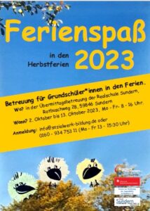 Dauer des gesamten Ferienprogramms: 02.10. – 13.10. 2023
