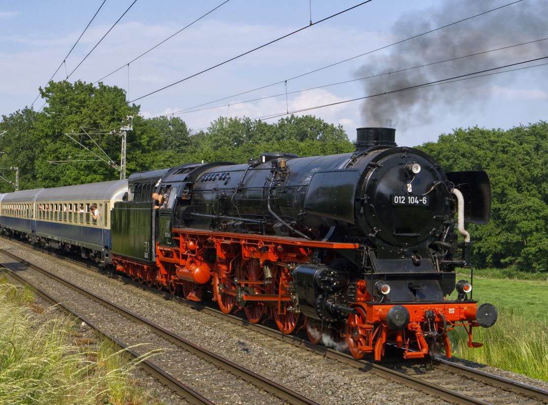 Zuglok ist die imposante Schnellzug-Dampflok 01 1104 aus dem Jahr 1940. Die 177 Tonnen schwere Maschine erreicht bis zu 140 km/h und wurde nach mehr als 20-jähriger Restaurierung vom Verein Faszination Dampf e.V. aus Nürnberg im Jahr 2023 wieder in Betrieb genommen.