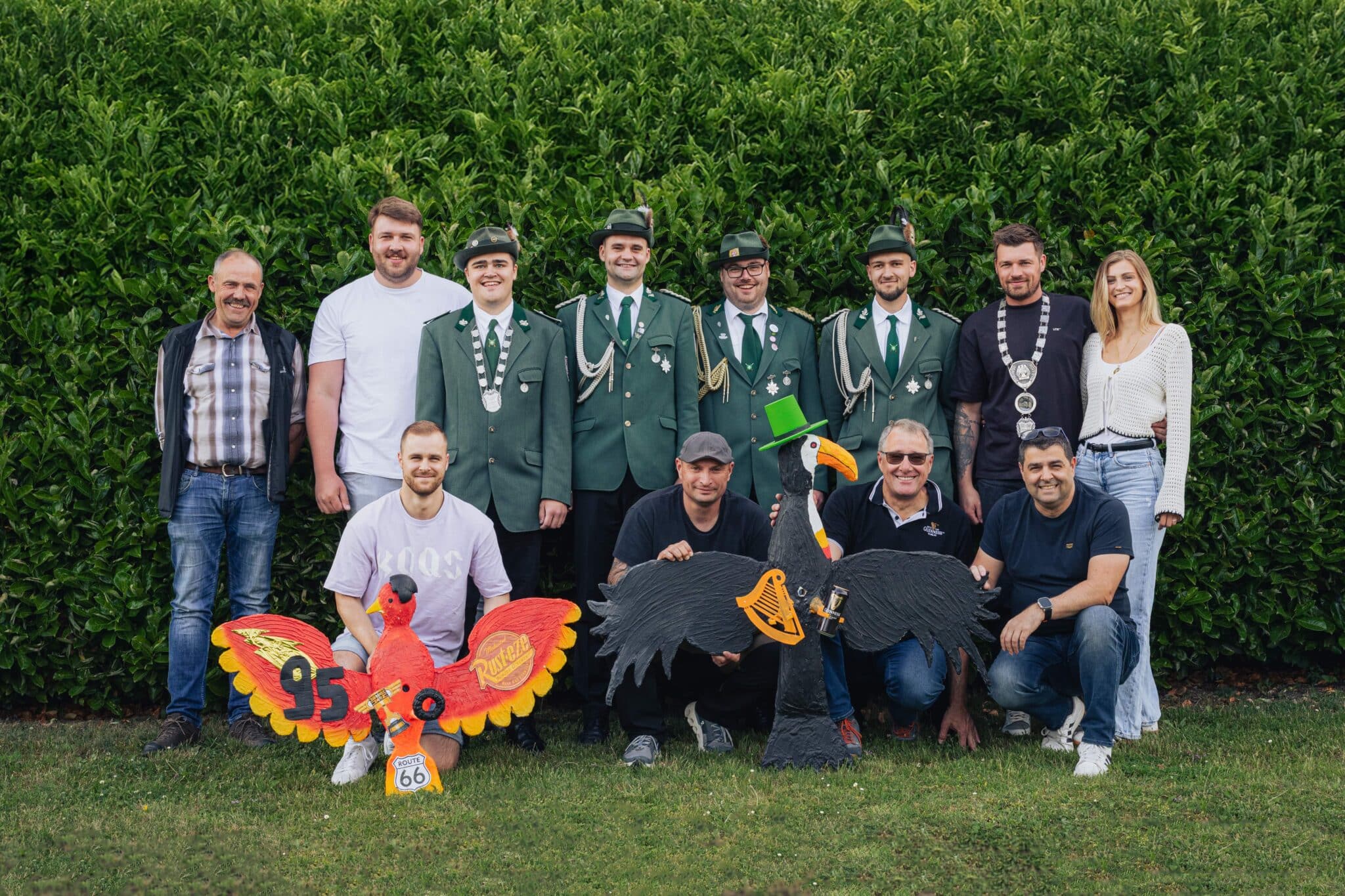 In der vergangenen Jahreshauptversammlung ersteigerte der Stammtisch „Irish Pub“ den diesjährigen Schützenvogel mit dem Namen „Sir Gilroy“. Der Jungschützenvogel hört auf den Namen „Lightning McQueen“. Beide Vögel wurden in den vergangenen Wochen mit freiwilligen Helfern aus dem Dorf und Vorstandsmitgliedern in mühevoller Kleinarbeit gebaut.