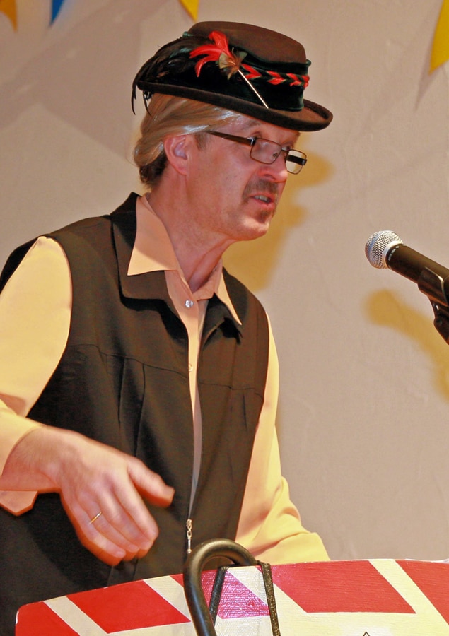 Neben den Ehrungen der ehemaligen Prinzen gab es noch eine besondere Ehrung: Seit 35 Jahren ist Werner Flügge schon Mitglied des Elferrates. Legendär sind seine Büttenreden nicht nur in Hövel, sondern auch in der Nachbarschaft. Darüber hinaus ist das karnevalistische Urgestein auch bei Sketchen oder Liedvorträgen immer präsent. In seiner 35. Büttenrede berichtete er als Wilma über die besonderen Missgeschicke von rüstigen Seniorinnen. In der Dorfchronik wurden wieder allerlei Kuriositäten des letzten Jahres zusammengestellt. Auch Bürgermeister Brodel blieb nicht verschont und nahm es mit Humor. Lustige Videoeinspielungen mit den Mitgliedern des Elferrates rundeten das Ganze ab.
