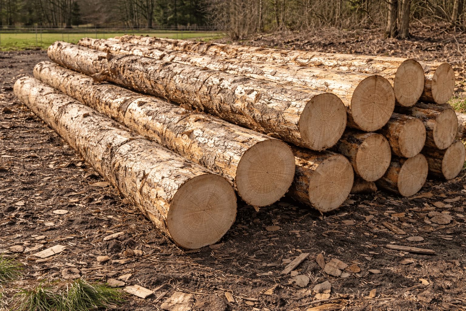 Unbe­kann­te haben meh­re­re Meter Stamm­holz ent­wen­det, das für ein Brü­cken­bau­pro­jekt in Hach­en vor­ge­se­hen war. (Foto: Sym­bol­bil­d/Ki-gene­riert)